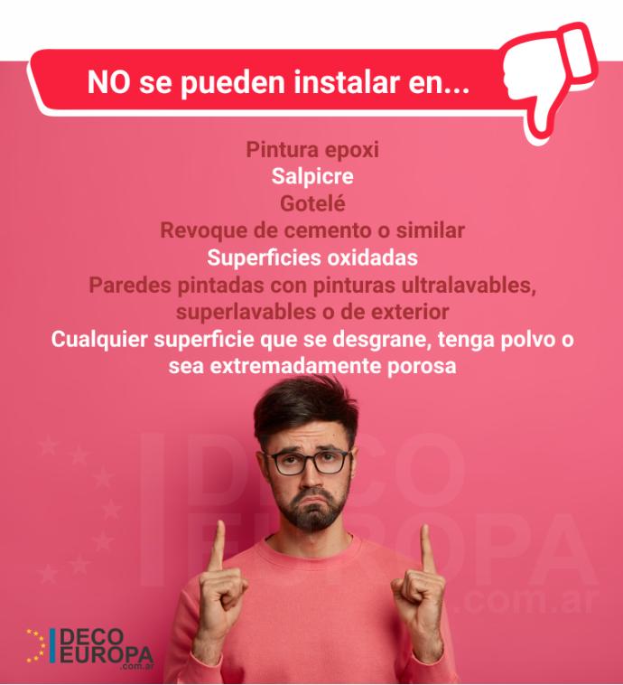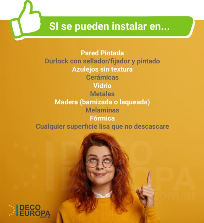 • Son fáciles de colocar, sólo los despegas de la base y pegas sobre la superficie deseada limpia y seca. Podes ayudarte con un trapo para que no queden burbujas. Podes consultar nuestra Guía de instalación